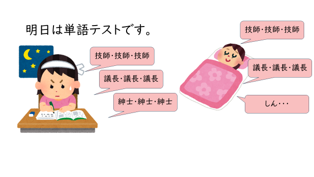 明日は単語テストです。夜、たくさん覚えました。