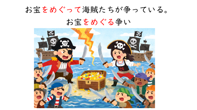 - 話題の中心をとりまく 対立・議論・問題 を表す