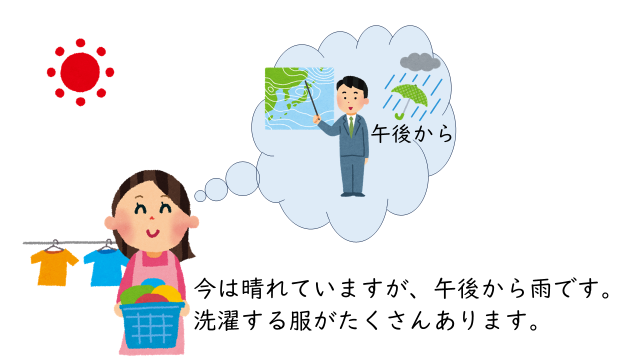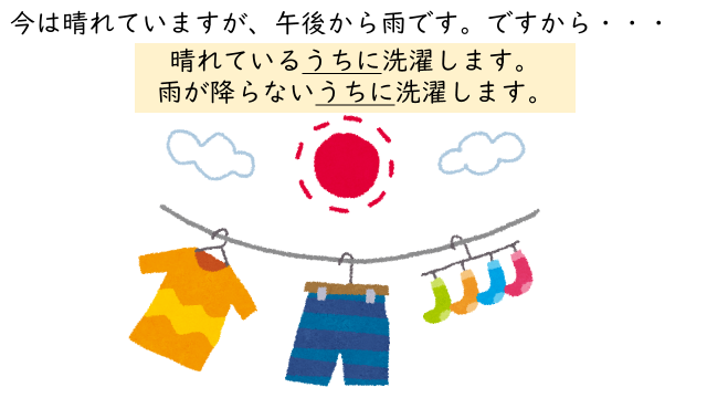 • 晴れているうちに、洗濯しよう。